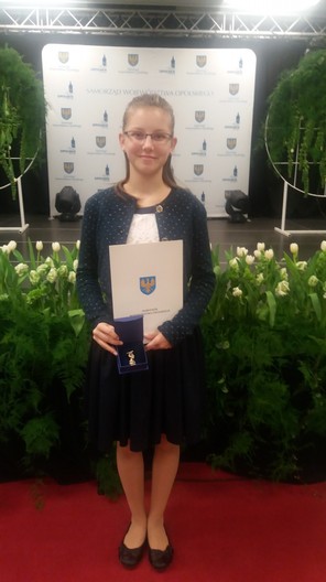 Anna Wiktoria Biliczak jest uczennicą wykazującą się nie tylko najwyższymi wynikami w nauce. Jest także laureatką i zwyciężczynią konkursów krajowych i międzynarodowych. Uczennica została zaproszona przez Marszałka Województwa Opolskiego na obchody Regionalnego Święta Edukacji, gdzie w gronie najlepszych uczniów i naukowców naszego województwa, odebrała odznaczenie. W uroczystej gali towarzyszyły jej Pani Dyrektor Gabriela Sowa oraz wychowawczyni Pani Joanna Strzałka.